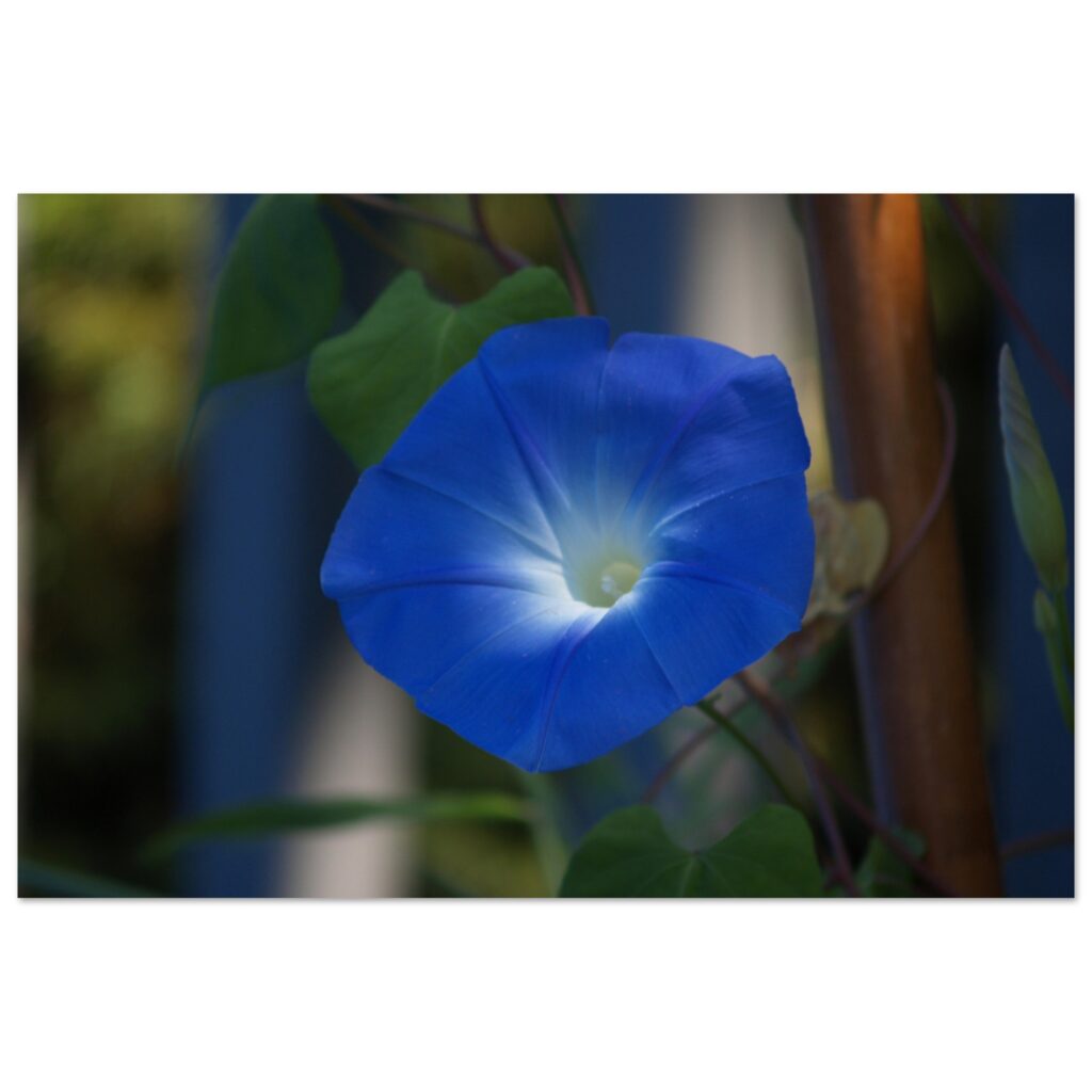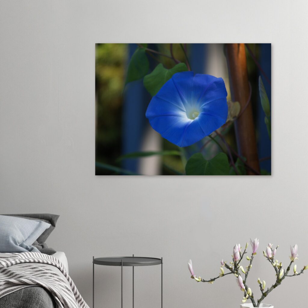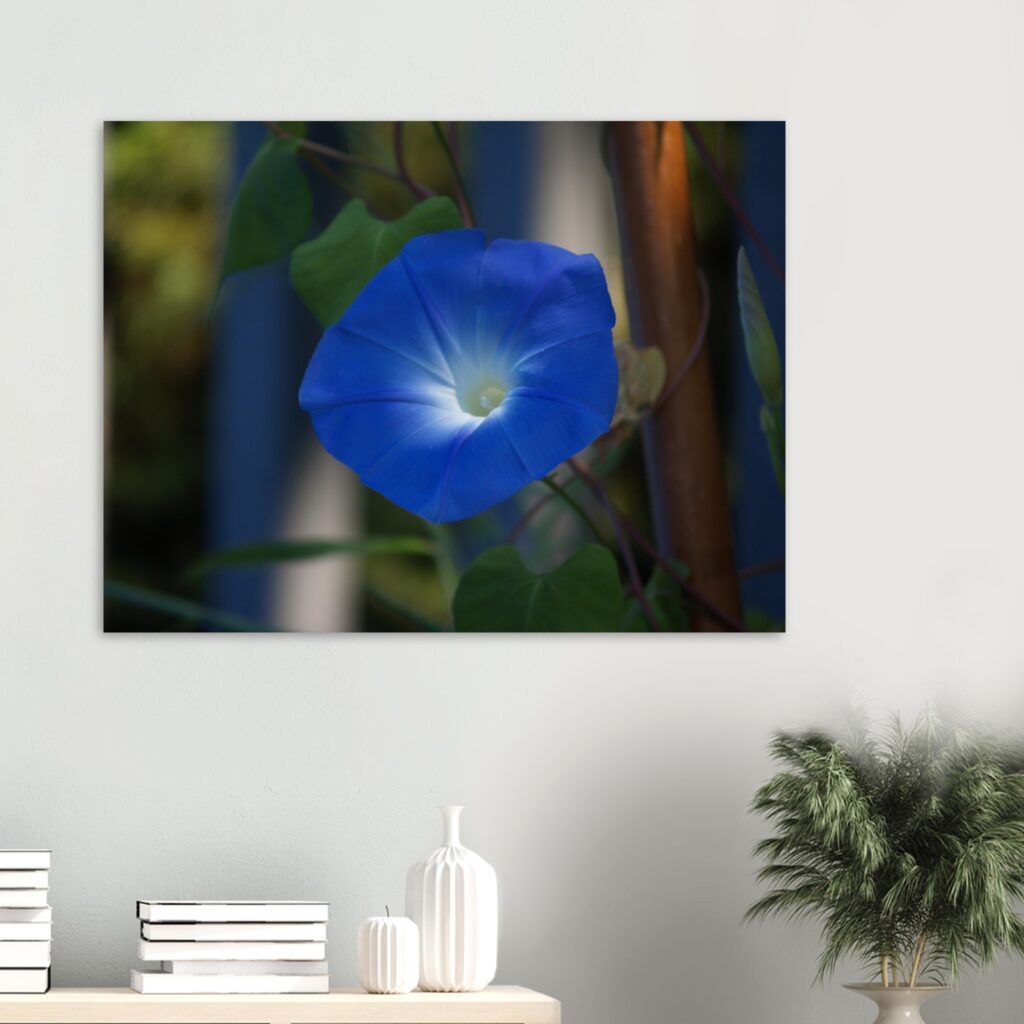 This glowing Morning Glory flower wall art print adds vibrant blue tones to your wall decor. Perfect for nature lovers—shop this floral wall art today.