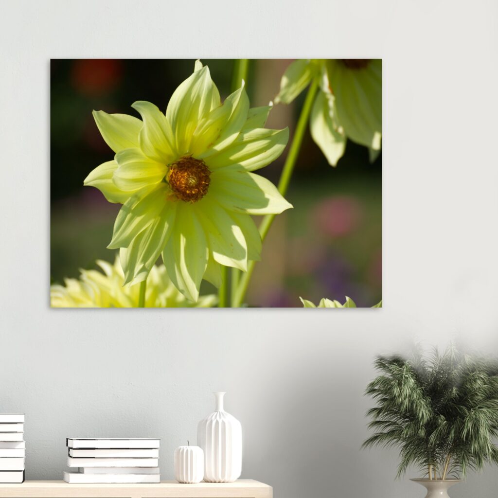 This Yellow Flowers Wall Art print features a soft daisy bloom glowing in summer sunlight. Perfect for floral decor, garden-inspired wall art, or nature-themed home accents. Brighten your space with this cheerful flower photo print today.